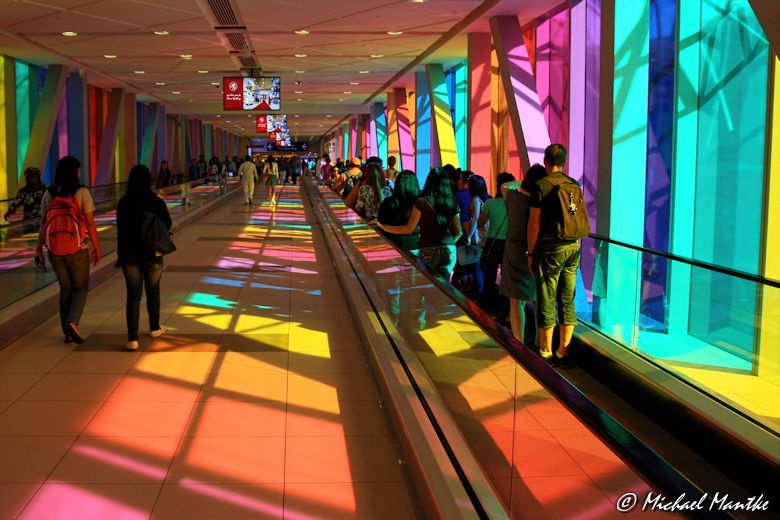 Dieses Foto aus Dubai stammt aus dem letzten Abschnitts des Tunnels, der von der Metro in die Dubai Mall führt. Wir sind hier mehrmals durch und ich war jedes Mal aufs Neue fasziniert von dem herrlichen bunten Lichtspielen. Die gesamte Dubai Mall an sich ist ja schon ein absolutes Erlebnis mit vielen tollen Highlights, aber der Weg dorthin – und glaube mir, der ist lang – reiht sich nahtlos darin ein.