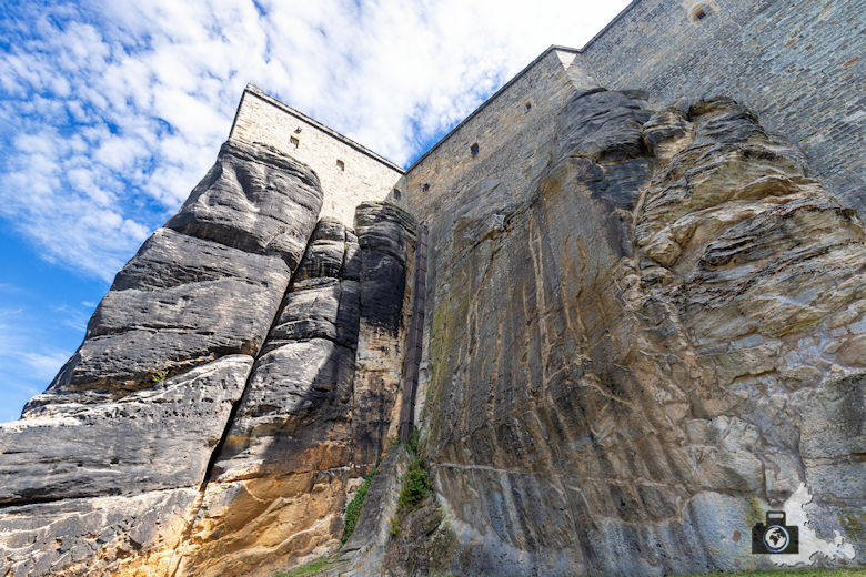 Ich fotografiere eifrig und bin restlos begeistert. Unter uns entdecken wir die Elbe, Königstein und die herrliche Landschaft Sachsens. Auf den Festungsmauern gibt es Türme und Türmchen zu bestaunen, ein Lustschlösschen zu entdecken und viele herrliche Motive wie riesige Kanonen und tolle Mauerabschnitte, die sich wunderbar als Motive verarbeiten und mit der Landschaft kombinieren lassen. Herrlich!