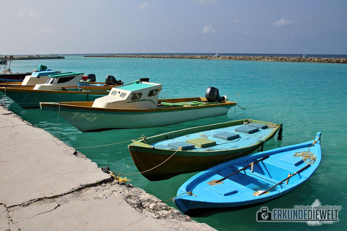 Boote im Hafen, Ukulhas, Malediven
