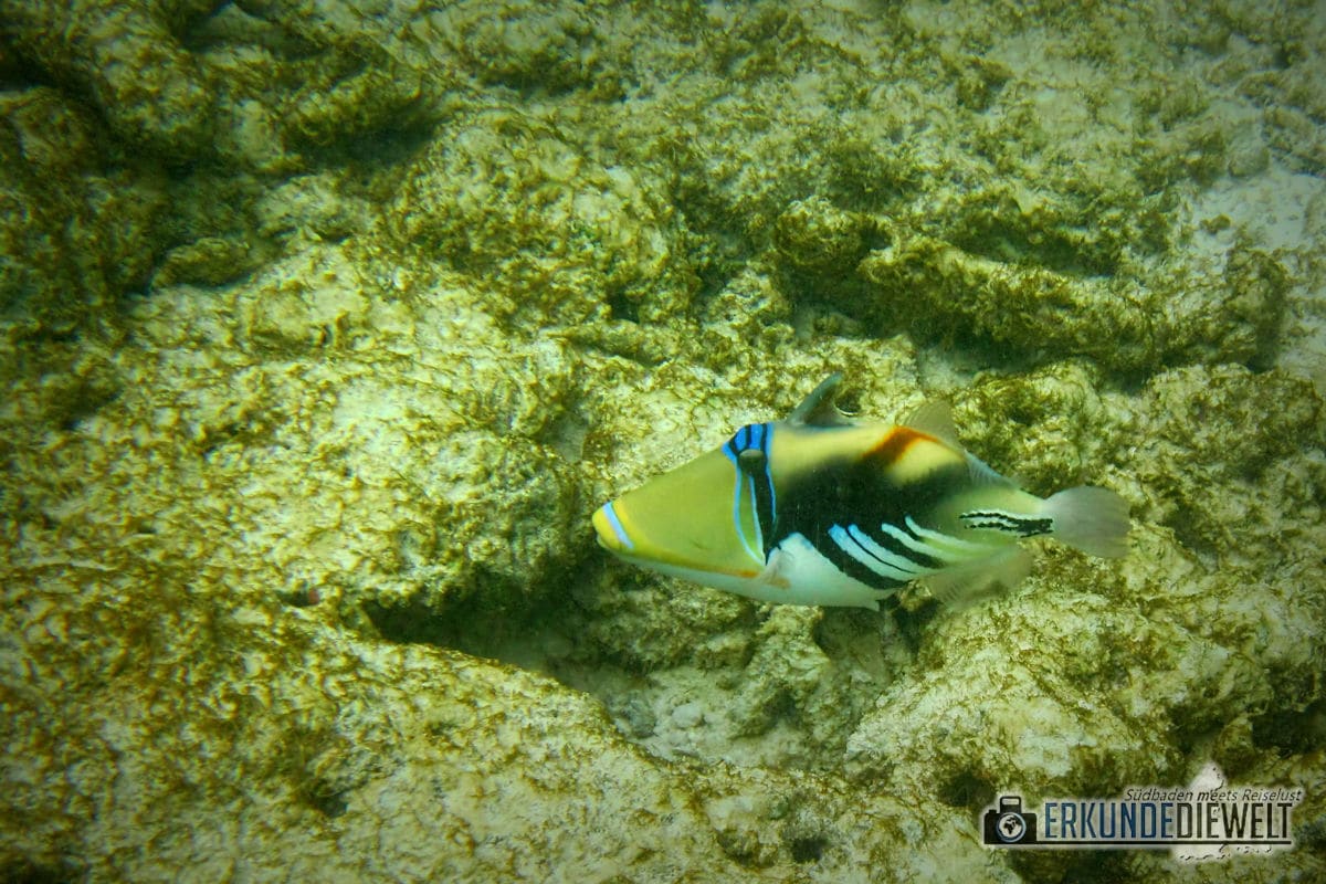 Orangestreifen Drückerfisch (balistapus undulatus), Ukulhas, Malediven