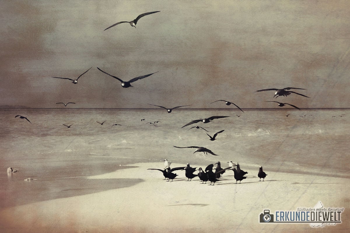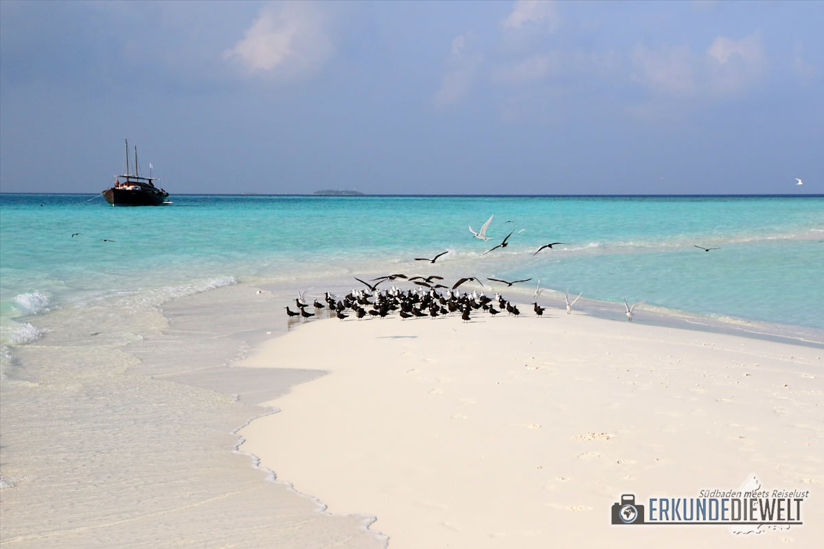 Vogelschwarm auf Sandbank, Malediven