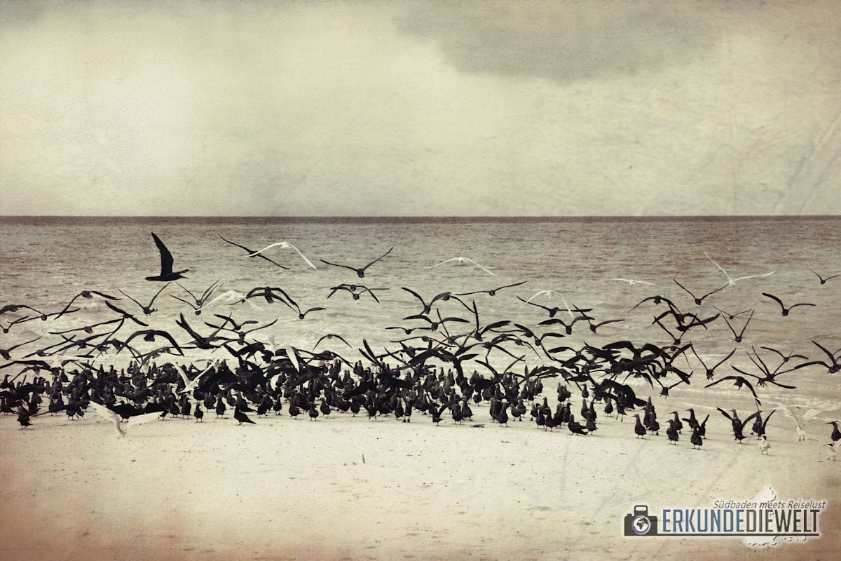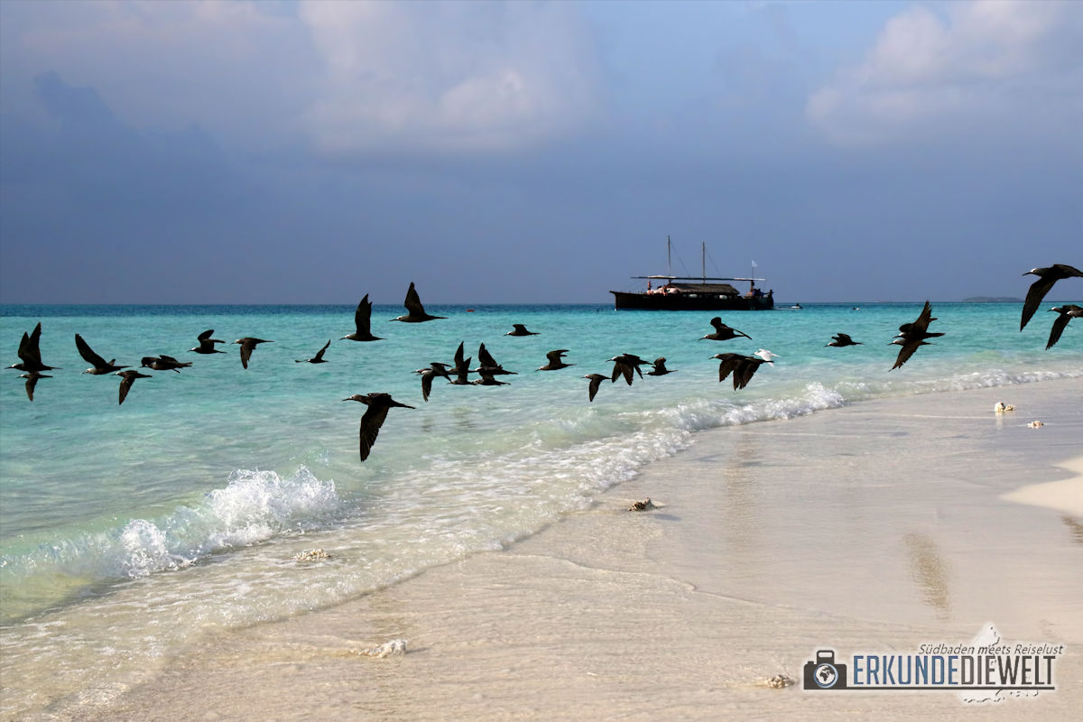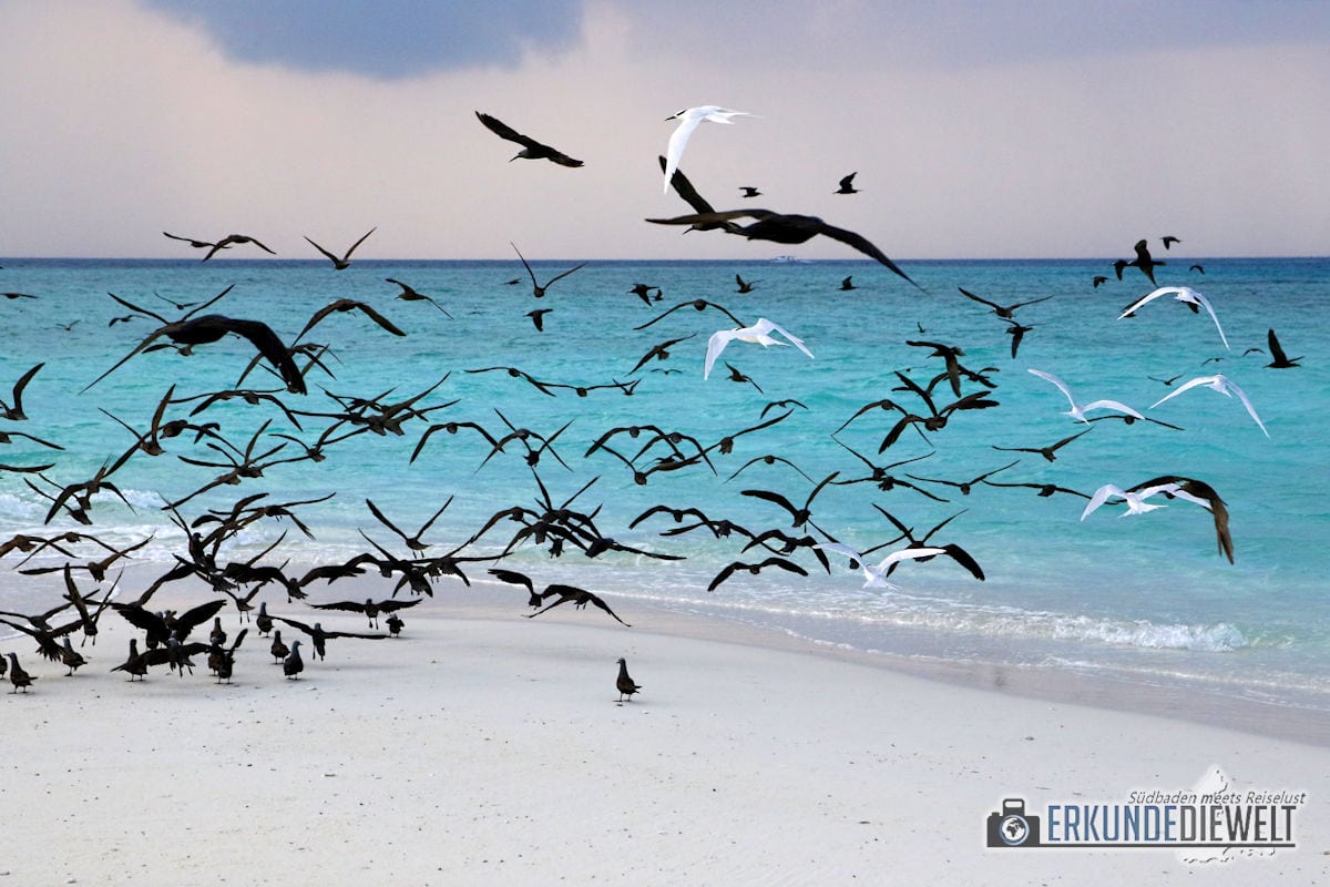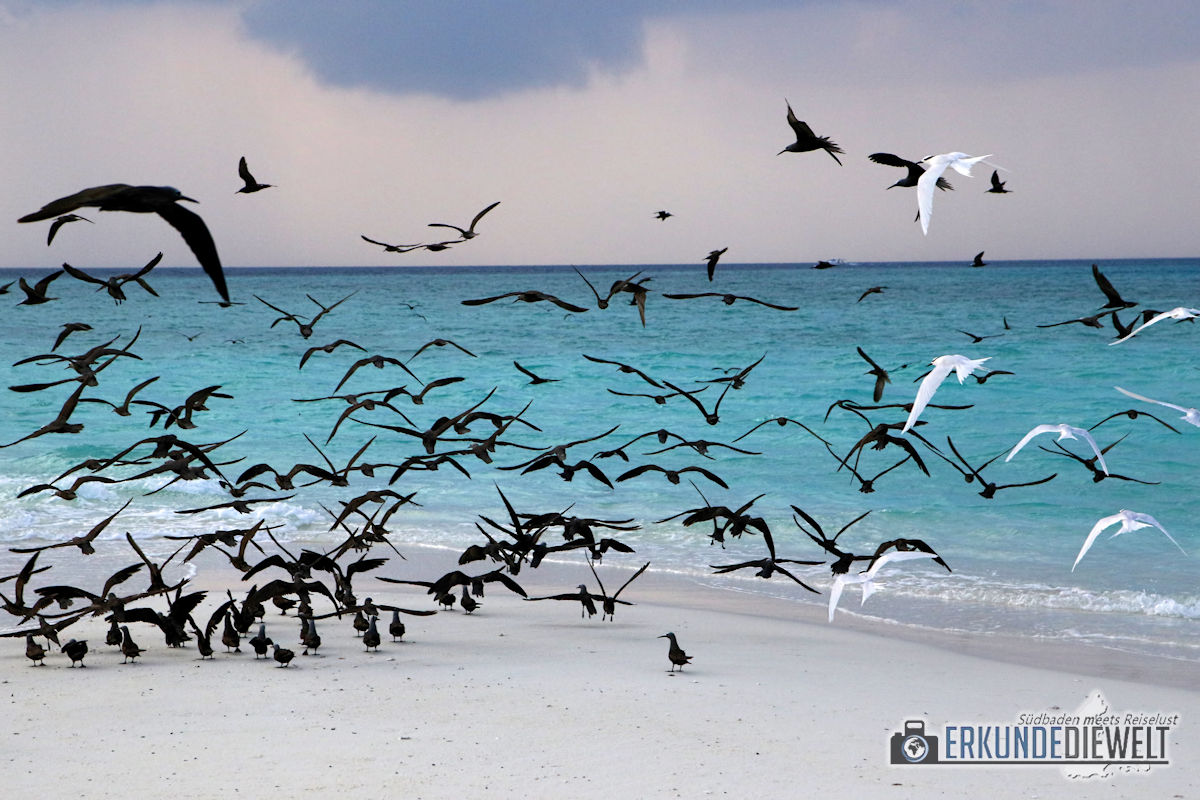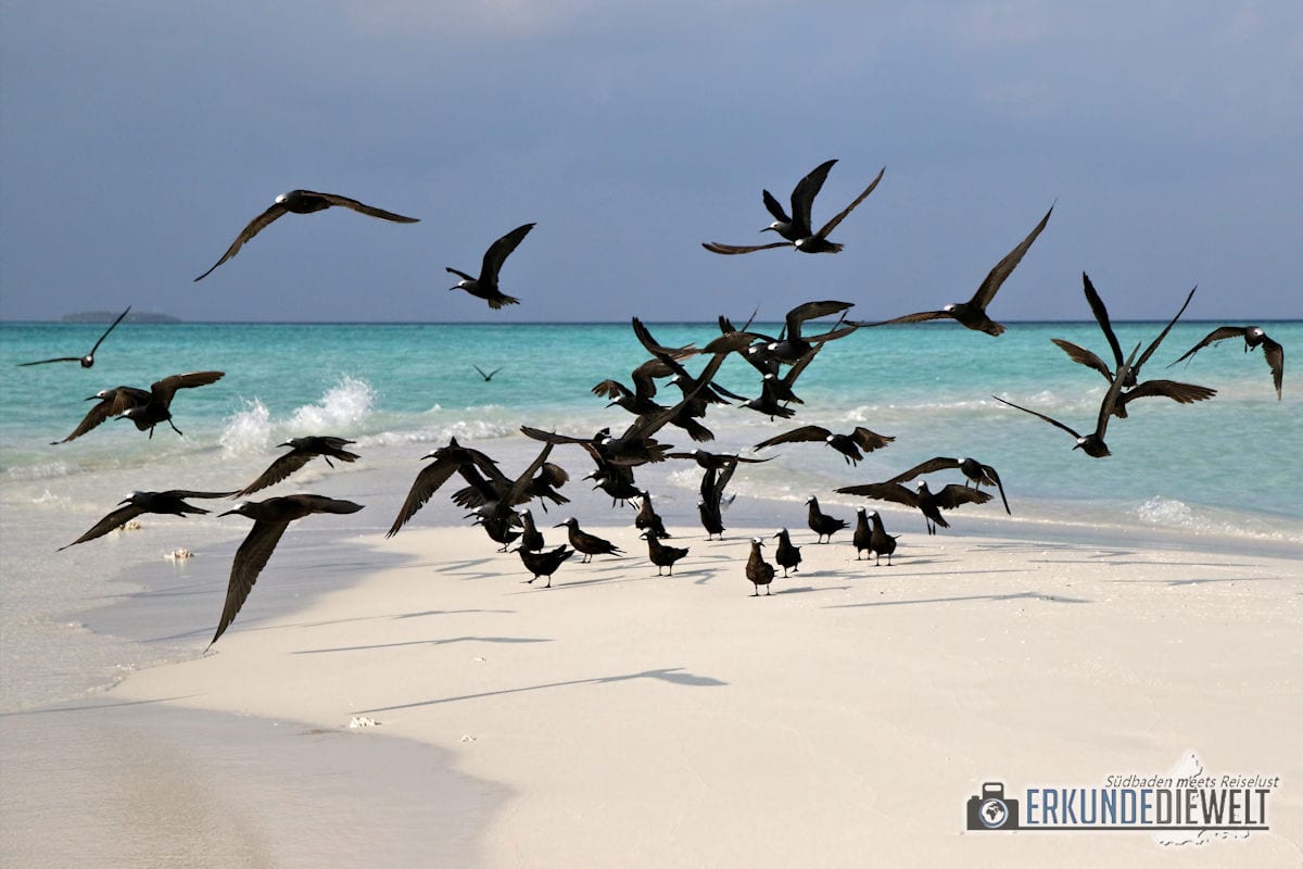 Vogelschwarm am Strand, Malediven