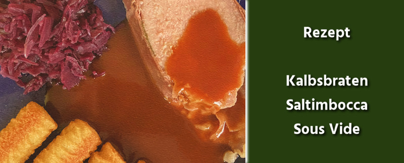 Kalbsbraten zuzubereiten gelingt mittels Sous Vide Garmethode besonders einfach. Der Braten wird butterzart und zergeht förmlich auf der Zunge. Dazu kommt das herrliche Aroma der Salbei Blätter, wenn er nach Saltimbocca Art wie nachfolgend beschrieben zubereitet wird.